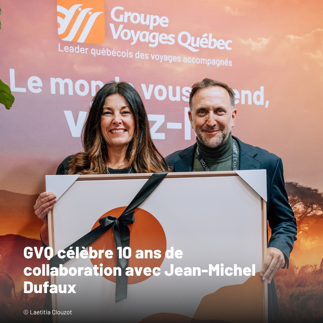 Groupe Voyages Québec (GVQ) célèbre avec fierté une décennie de collaboration créative avec Jean-Michel Dufaux, ambassadeur et porte-parole de l’entreprise depuis 2015. Cette alliance exceptionnelle a contribué à faire rayonner les expériences de voyage authentiques offertes par Groupe Voyages Québec auprès d’une vaste clientèle.