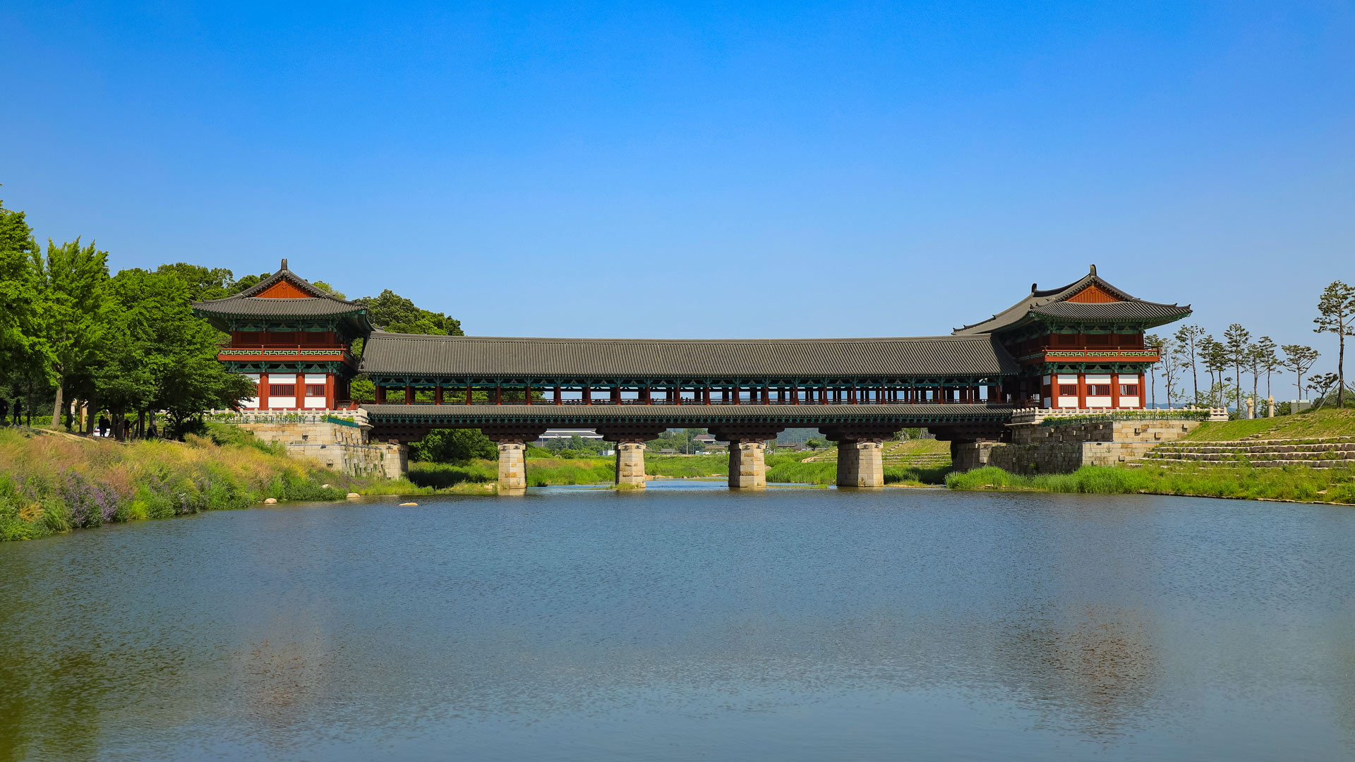 En après-midi, vous rejoindrez la ville de Gyeongju, véritable bastion de la culture coréenne. Elle fut la capitale du royaume de Silla pendant près de 1000 ans (57 av. J.-C. – 935) et son cœur historique, protégé par l’UNESCO, regorge de sites couvrant cette période. Passage par le palais royal Donggung, aménagé sur les bords de l’étang Wolji lors du règne du roi Munmu (VIIe siècle). L’endroit est particulièrement photogénique en soirée lorsqu’illuminé. Enfin, vous serez émerveillés à la vue du plus grand pont couvert en bois de Corée, le pont Woljeonggyo (66,15 mètres de long et 13 mètres de large). PD/D/S