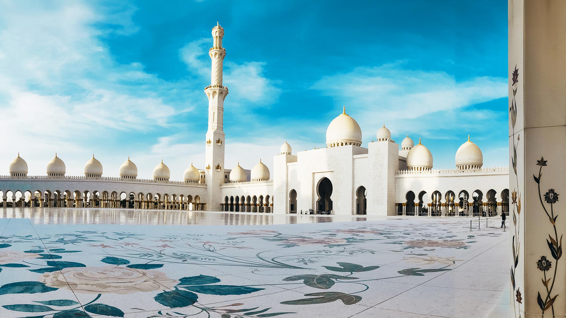 Arrivée à Dubaï et transfert à Abou Dabi. Découverte de la mosquée Sheikh Zayed, la plus grande des Émirats, avec son architecture qui sort des mille et une nuits. Elle compte quatre minarets de 107 mètres de haut et 82 dômes de sept tailles différentes. Installation à l’hôtel.