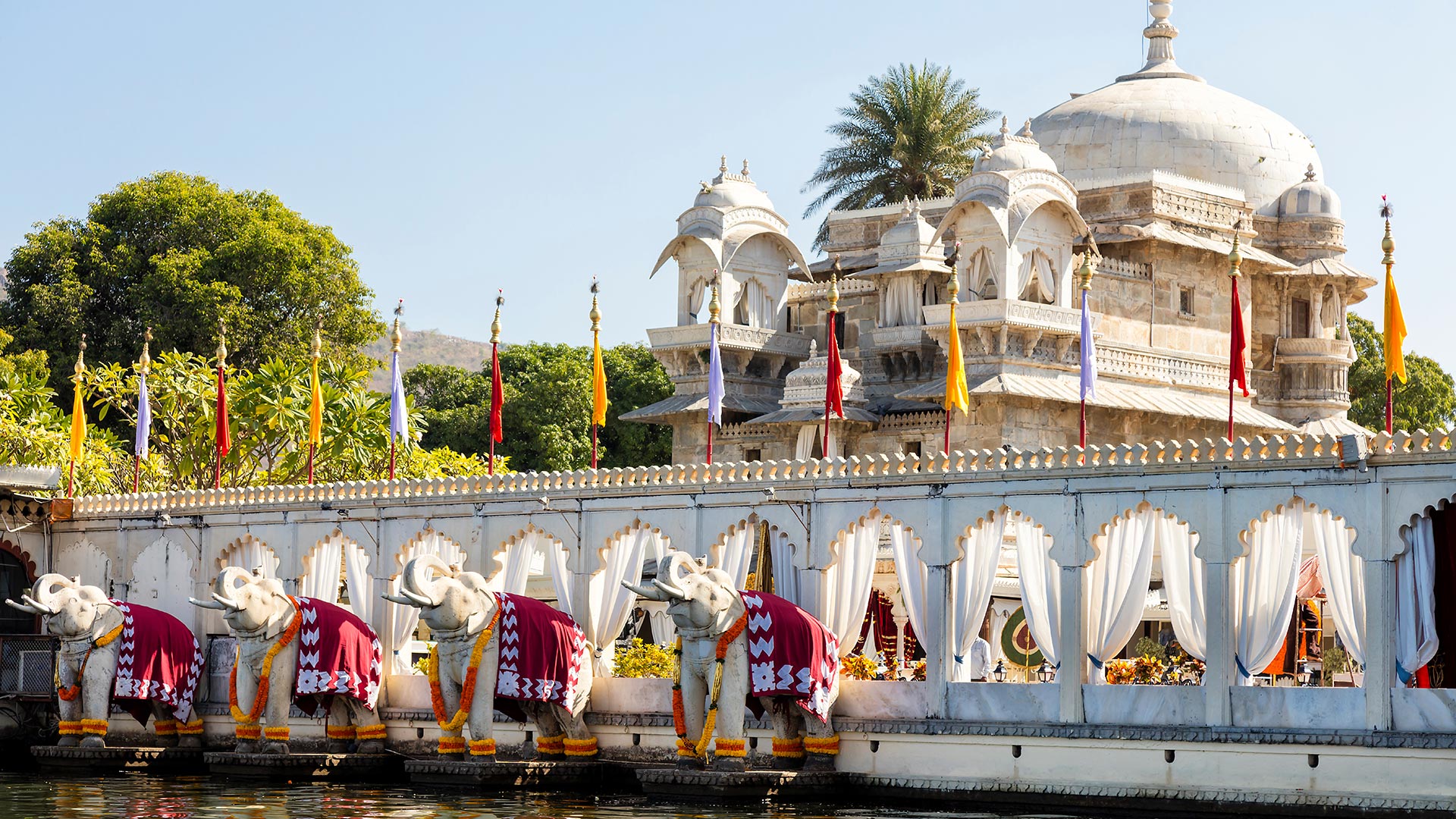 Visite d’Udaipur. Vous découvrirez d’abord l’intérieur du palais du maharaja d’Udaipur (ou City Palace), l’un des plus grands et des plus beaux palais-forteresses du Rajasthan. Construit au 18e siècle, ce palais, dont une partie est encore habitée par les descendants des Maharana d'Udaipur, domine le lac Pichola. C'est un labyrinthe de halls en marbre, de salons décorés, de cours, de nombreuses céramiques et de jardins. Promenade dans le jardin de Saheliyon-ki-Bari, le jardin des demoiselles, un parc superbe aux nombreuses fontaines. Poursuivez avec la visite d’une superbe collection de voitures de style classique vintage. En après-midi, arrêt dans un centre de peinture sur soie spécialisé dans les miniatures ; un travail de patience et de précision fort impressionnant et très typique. En fin d’après-midi, si les conditions météorologiques le permettent, croisière sur le lac Pichola pour admirer la magnifique façade du palais d’Udaipur. Arrêt à l’île de Jag Mandir pour y admirer la vue. Retour à l’hôtel. PD/D/S