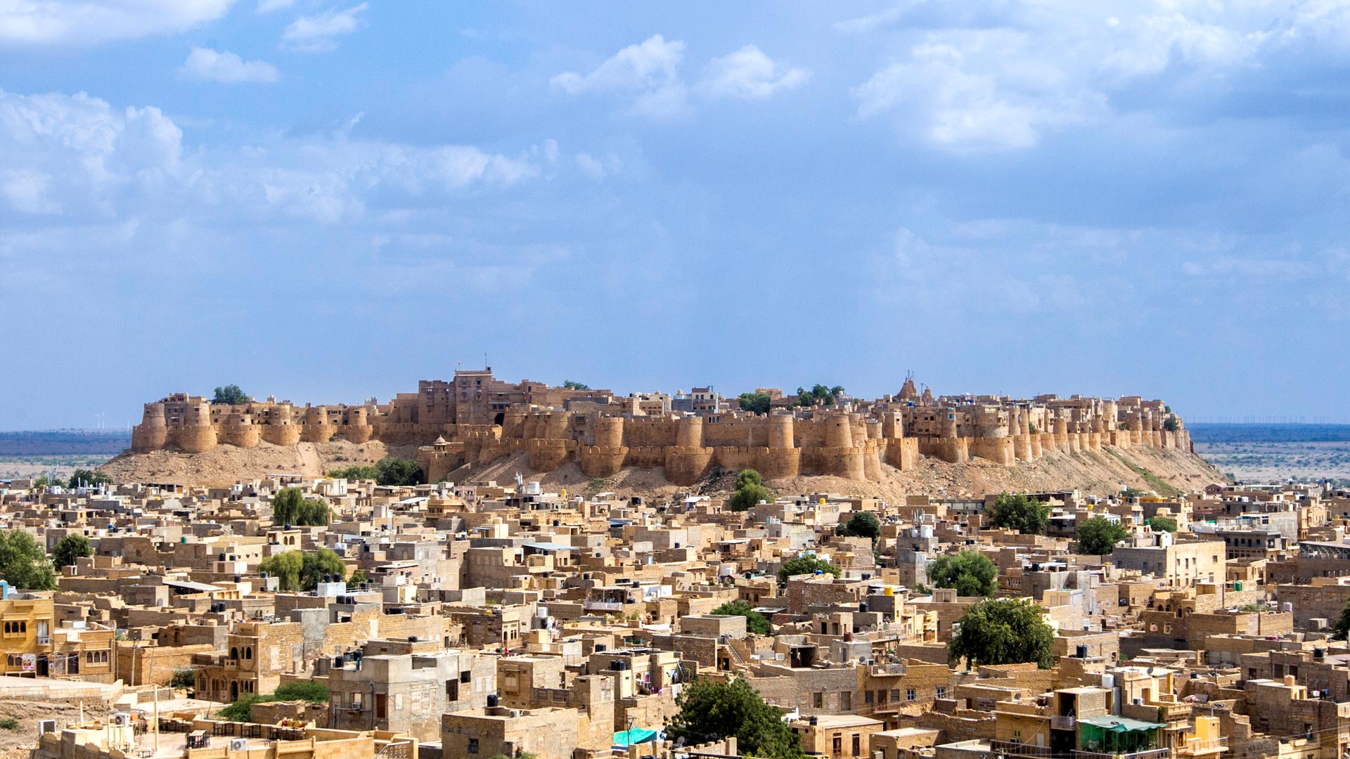 Vol vers Jaisalmer. À l’arrivée, installation à votre hôtel. Dressée au milieu du désert du Thar, la cité de Jaisalmer apparaît comme un mirage au-dessus des plaines désertiques tel un immense château de sable. Lorsque le soleil se lève, le fort arbore une couleur ocre. On surnomme ainsi Jaisalmar la Ville d’Or. La ville est une vraie mosaïque de cultures ; hindous, musulmans et jaïns y vivent. Mais ici, pas de tensions, car les peuples vivent ensemble depuis toujours ! Le fort de Jaisalmer n’est pas qu’un simple site touristique ; il fait totalement partie de la ville. C’est un quartier à part, ceinturé de bastions, où la vie s’anime très tôt le matin. Se promener dans des ruelles sinueuses, se poser dans un café au-dessus de la Vieille Ville, rencontrer des habitants hauts en couleurs… Autant dire que la visite de Jaisalmer est un incontournable en Inde ! En après-midi, visite du fort de Jaisalmer; comme sorti d’un conte des mille et une nuits, il fascine les voyageurs depuis toujours. Un quart de la population de Jaisalmer vit à l’intérieur du fort. Il abrite le palais royal, de superbes temples jaïns et hindous ainsi qu’une ribambelle d’échoppes et magasins de tous genres. Balade sur le lac Gadi Sagar, ce réservoir majestueux situé au sud-est de Jaisalmer. Jusqu’en 1965, il a été le seul approvisionnement en eau de la ville. Les habitants en ont fait un lieu sacré. Il est entouré de nombreux petits temples et sanctuaires. L’endroit est charmant et attire de nombreux oiseaux ; il faut y passer quelques heures, au calme, loin de l’animation du centre de Jaisalmer. Retour à l’hôtel. PD/D/S