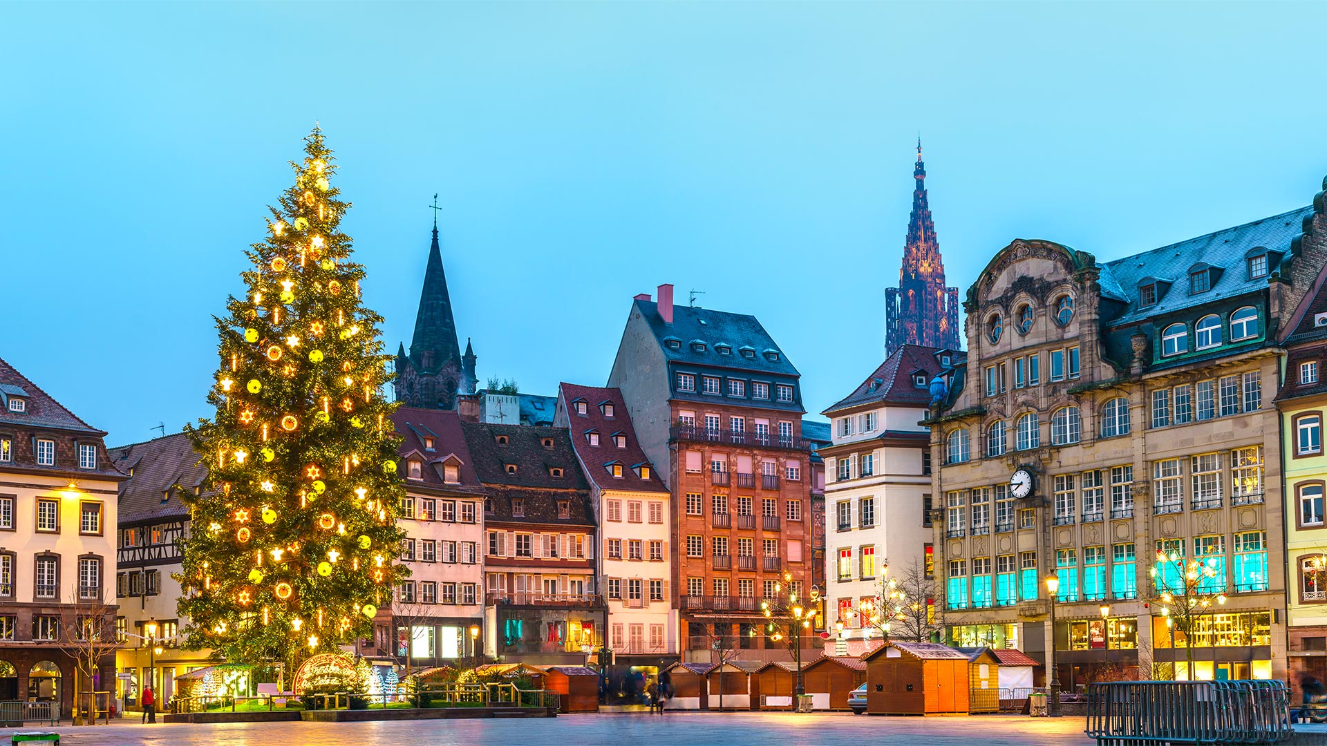 Arrivée à Francfort et transfert en direction de Strasbourg. Votre séjour débute dans la capitale de Noël avec un tour de ville panoramique. Vous découvrirez entre autres le quartier pittoresque de la Petite France avec ses maisons à colombages, ainsi que la Cathédrale Notre-Dame de Strasbourg, véritable chef d’œuvre de l’art gothique et emblème de la ville avec son unique flèche. Explorez ensuite le riche patrimoine historique de la ville avec notamment la Grande Île et le quartier de la Neustadt, ancien quartier allemand, inscrit au patrimoine mondial de l’UNESCO. Transfert et installation* à l’hôtel. Profitez de votre soirée libre pour explorer les différents marchés de Noël qui illuminent la ville. *Comme partout, les chambres seront disponibles vers de 15 h.
