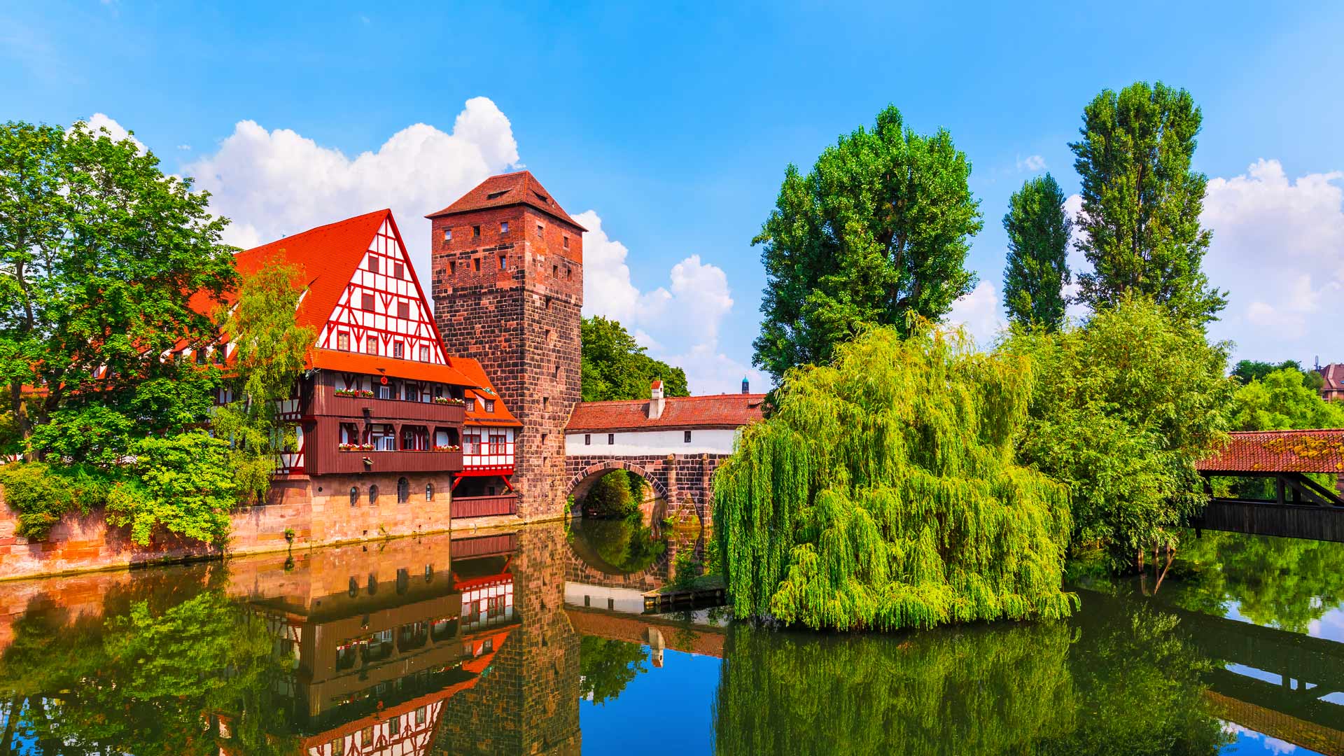 En matinée, vous prendrez part à une visite guidée à pied du centre historique de Nuremberg. Trop souvent restreinte qu’à son rôle en tant que lieu du procès médiatisé des chefs nazis (1945-1946), la ville possède une allure médiévale surprenante, recréée avec brio grâce à ses maisons à colombage, ses places publiques ornées de fontaines, ses remparts imposants et la rivière Pegnitz coulant en son centre. La visite couvrira la place du Grand-Marché, lieu de l’un des plus célèbres marchés de Noël d’Allemagne, l’hôtel de ville, l’église Saint-Sebald, la maison de résidence du peintre Albrecht Dürer pendant près de 20 ans (1509-1528) et la place publique adjacente (Tiergärtnertorplatz). Après-midi libre pour arpenter ses ruelles, accéder à la forteresse Kaiserburg ou encore savourer du pain d’épice faisant la renommée de la ville. PD
