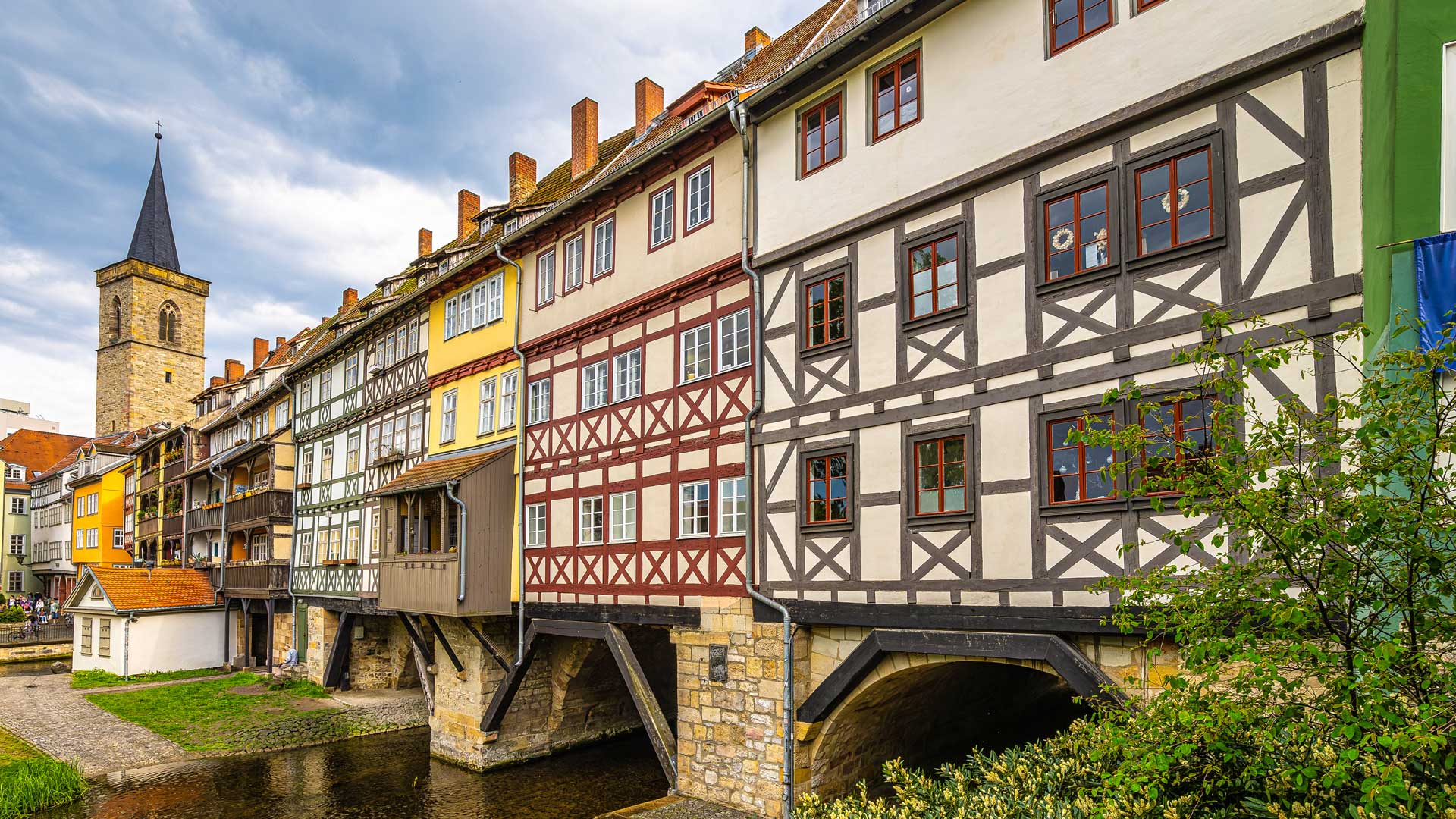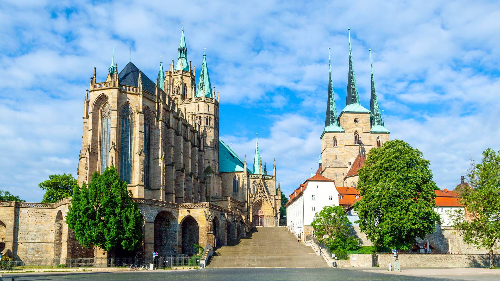 Par la suite, un court trajet vous mènera à Erfurt, capitale de la Thuringe et ville universitaire qui joua un rôle prépondérant dans la diffusion des idées humanistes en Allemagne. Martin Luther, l’auteur des 95 Thèses, compta parmi ses étudiants illustres. Du temps libre vous sera accordé pour vous balader dans cette ville à l’atmosphère joviale. Profitez-en pour admirer les élégantes demeures sur le pourtour de la place Fischmarkt, la série de charmantes maisons à colombages sur le pont Krämerbrücke (le Ponte Vecchio d’Erfurt !), rejoindre la forteresse Petersberg ou encore déguster une savoureuse Thüringer Rostbratwurst, saucisse traditionnelle servie dans un petit pain, à l’un des nombreux kiosques sur les places publiques. Installation à l’hôtel situé en périphérie de la ville. PD