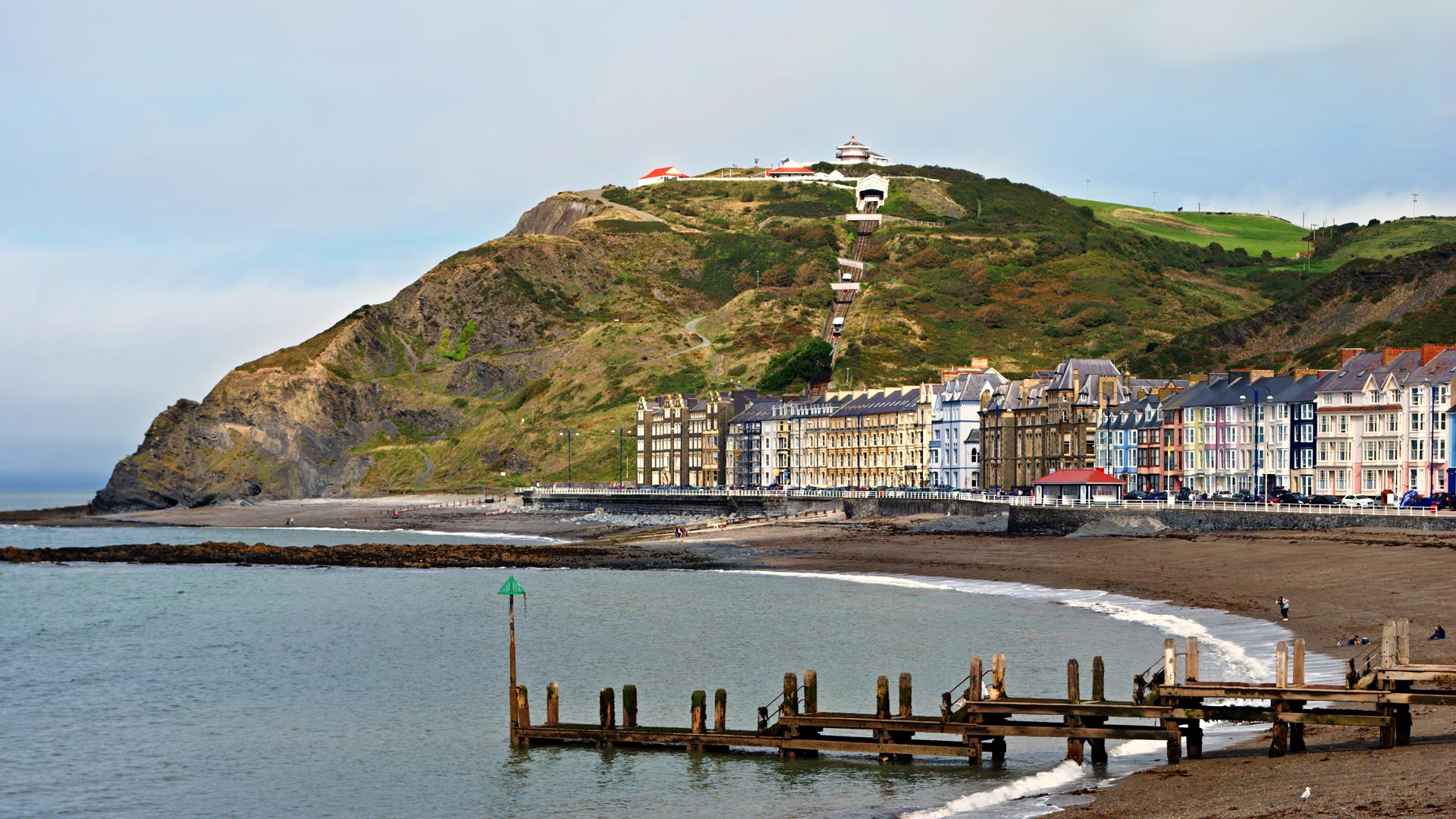 Vous emprunterez la route vers le village de Blaenau Ffestiniog pour un trajet pittoresque à bord du train à vapeur Ffestiniog Railway, jusqu’au port de Porthmadog. Initialement construite pour le transport de l’ardoise extraite dans les collines entourant le village, la ligne se veut le plus ancien chemin de fer à voie étroite toujours en activité au monde. Constitué de wagons en bois, il trace son chemin à travers un paysage à la fois montagneux et forestier, en plus d’enjamber des rivières à la pureté étonnante. Le trajet vous permettra de découvrir une partie du Parc national de Snowdonia, le plus grand parc du Pays de Galles. Continuation vers le village irréel de Portmeirion. Édifiés à partir d’artefacts récupérés à travers le monde par l’architecte gallois Clough Williams-Ellis, les monuments du village semblent tout droit sortis d’un conte imaginaire. Le résultat est à la fois éclectique, spectaculaire et très coloré ! Enfin, visite des mines d’ardoise de Llanfair, dont le matériau extrait servait dans la construction de maisons. C’est l’occasion unique d’avoir un aperçu de la vie des mineurs. Route vers l’hôtel à Aberystwyth et souper. PD/S