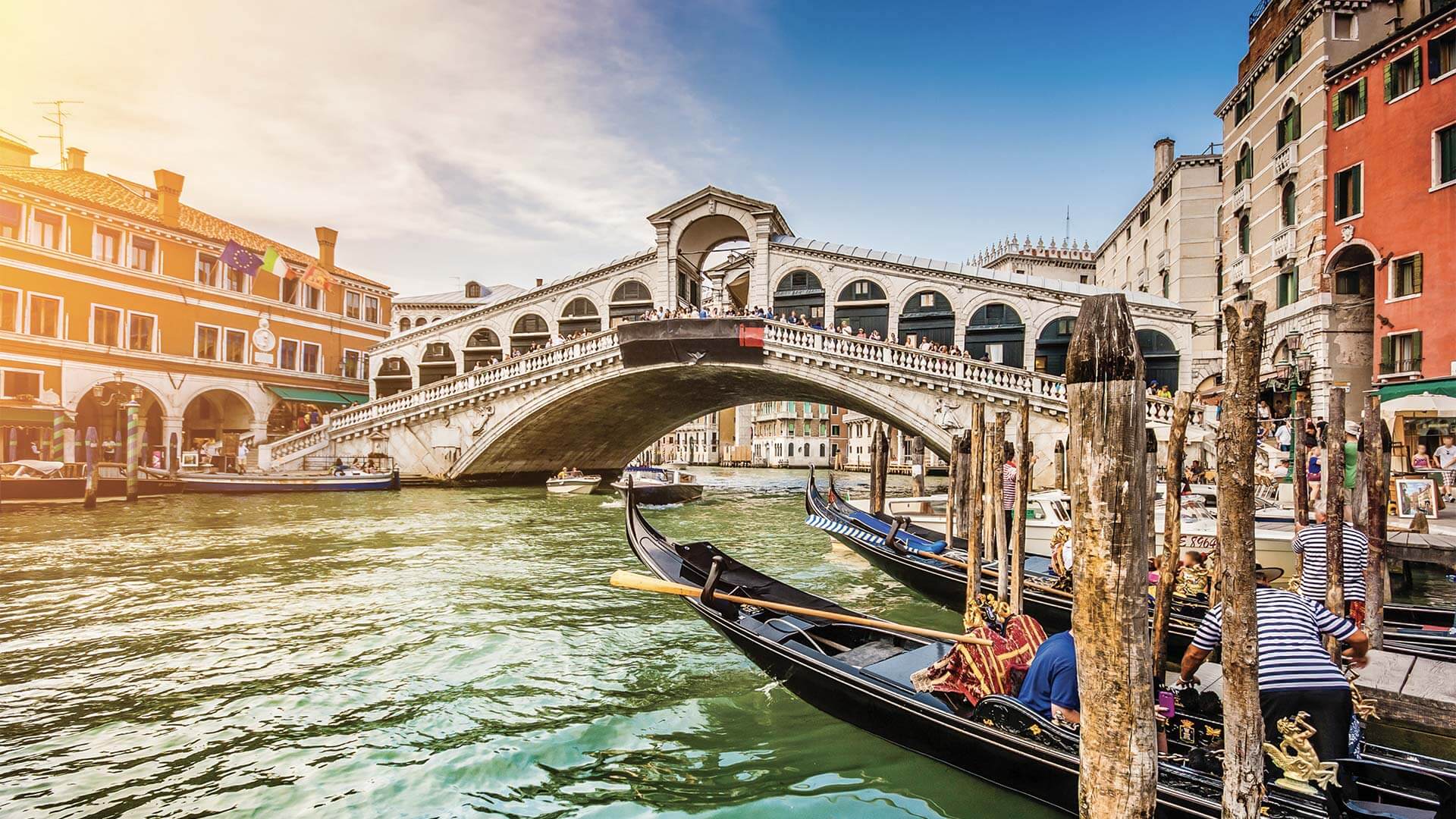 Arrivée à Venise. Transfert en autocar vers votre hôtel* de Venise. En après-midi, en compagnie de votre guide local, balade dans le labyrinthe des ruelles de Venise pour y découvrir des éléments typiques de Venise tels que la Basilique Saint-Marc, la tour de l’Horloge et le pont des Soupirs. Installation à l’hôtel.