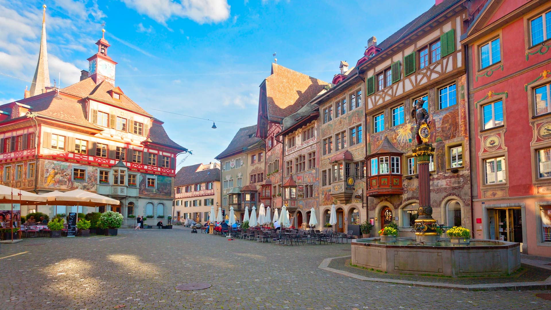 Route vers Schaffhouse pour une promenade en bateau aux chutes du Rhin. Avec 23 mètres de hauteur et 150 mètres de largeur, elles font partie des plus impressionnantes chutes d’eau d’Europe. C’est un spectacle incroyable qui met tous les sens en éveil et rappelle la force de la nature. Arrivée dans la ville médiévale de Schaffhouse et temps libre dans cette citée dominée par l’imposante forteresse du Munot. En après-midi, visite libre de Stein am Rhein, située à l’endroit où le lac de Constance se rétrécit pour former le Rhin. La bourgade est connue pour sa vieille ville pittoresque, abritant de superbes maisons à colombages et à façades peintes. Retour vers Zurich. PD